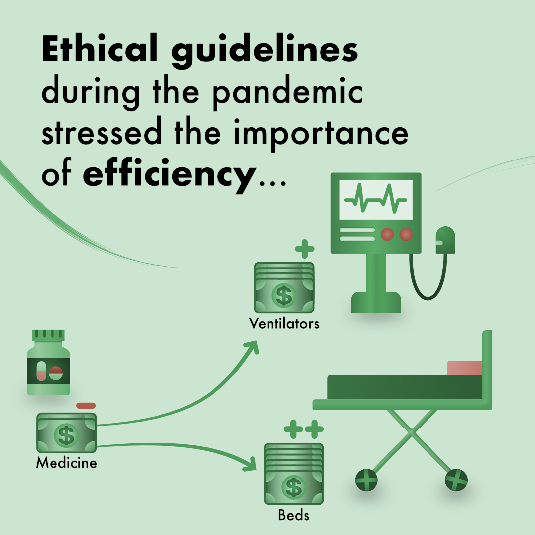 Image 2 – Background: I continued by providing context, with the illustrations showing how budgets were allocated from medical treatments to ventilators and hospital beds, i.e., equipment needed for treating COVID-patients.