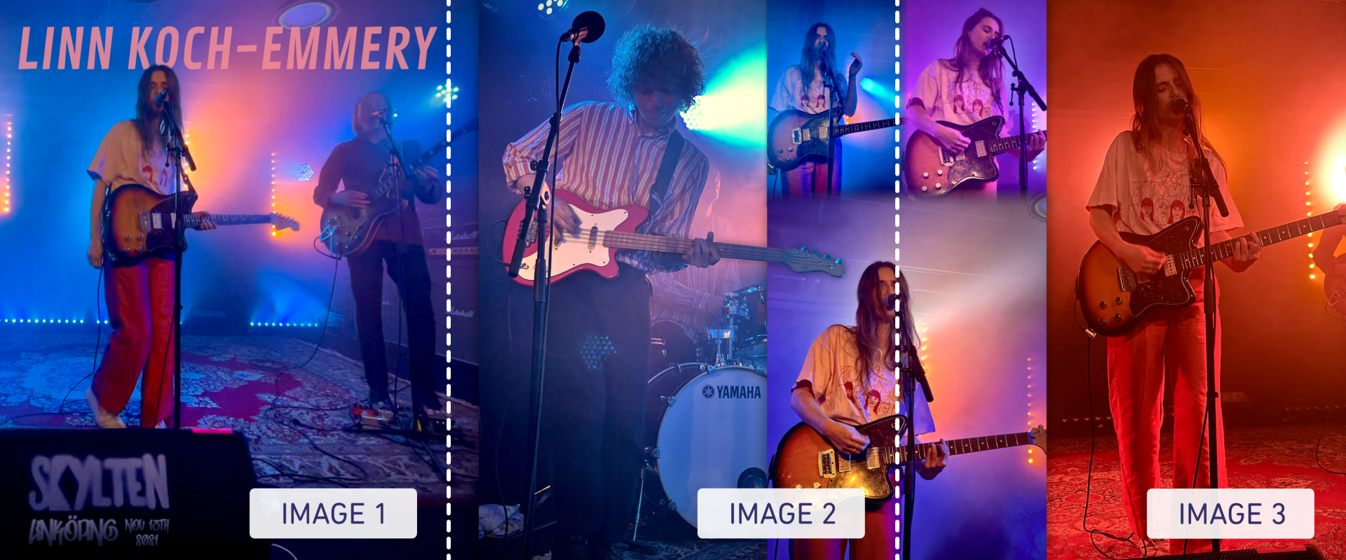 - The three photos of the vocalists in images 2 and 3 use transparent gradients, unifying the images.