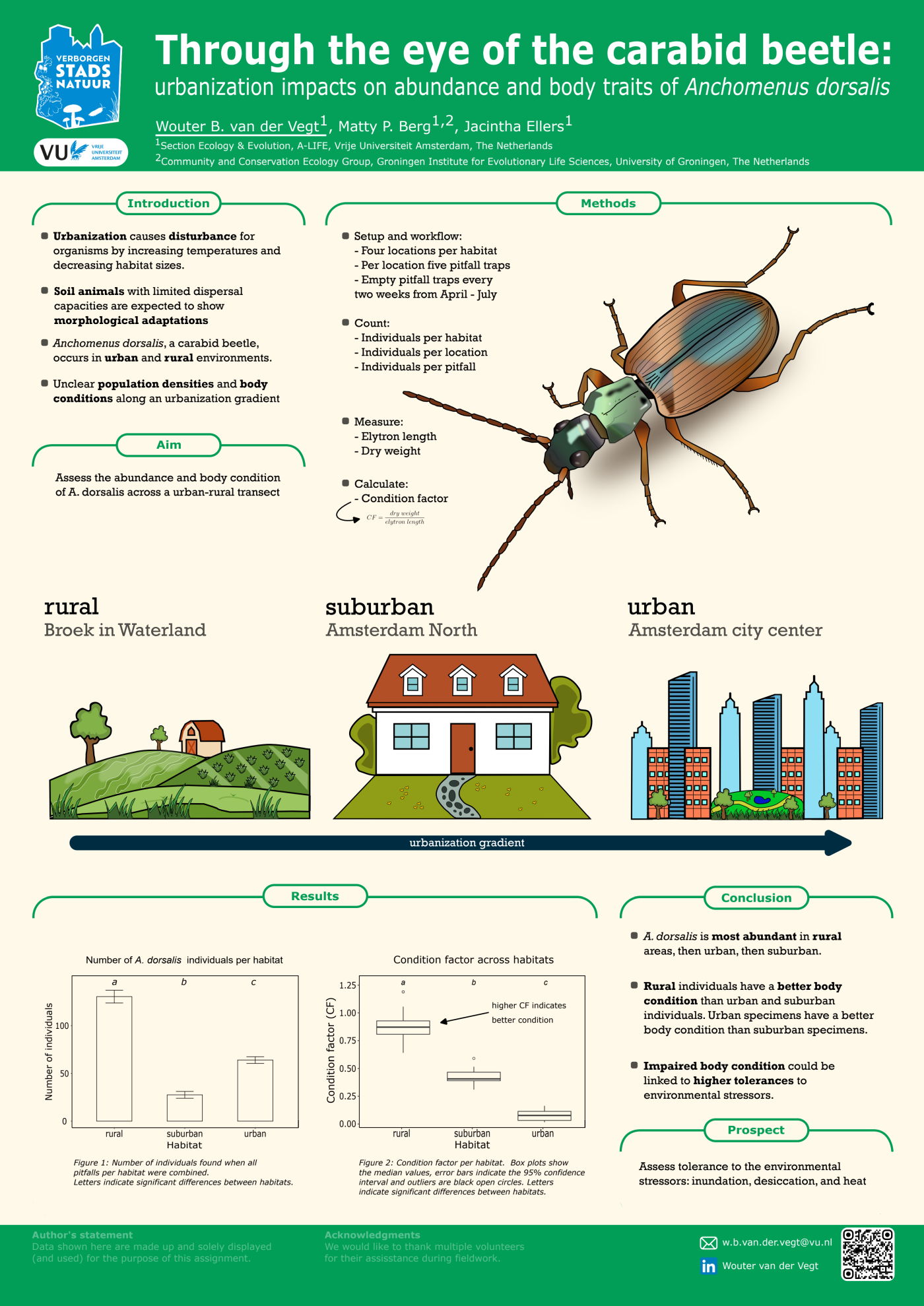 Discover how to make a creative scientific poster by exploring the innovative works of our students! The posters are made from scratch by the students using one of the three vector graphics software Inkscape, Adobe Illustrator, or Affinity Designer. Click on a poster to view it in a larger format. By signing up and logging in, you gain access to in-depth poster analysis, including word count and color usage details.